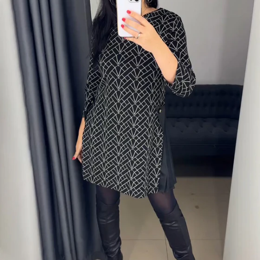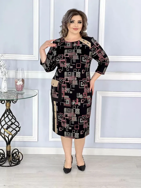 -35% NUOLAIDAA formos deimantinio rašto vidutinio ilgio suknelė