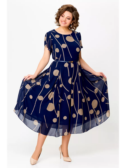-35% NUOLAIDAElegantiška taškuoto dizaino kvėpuojanti šifono suknelė